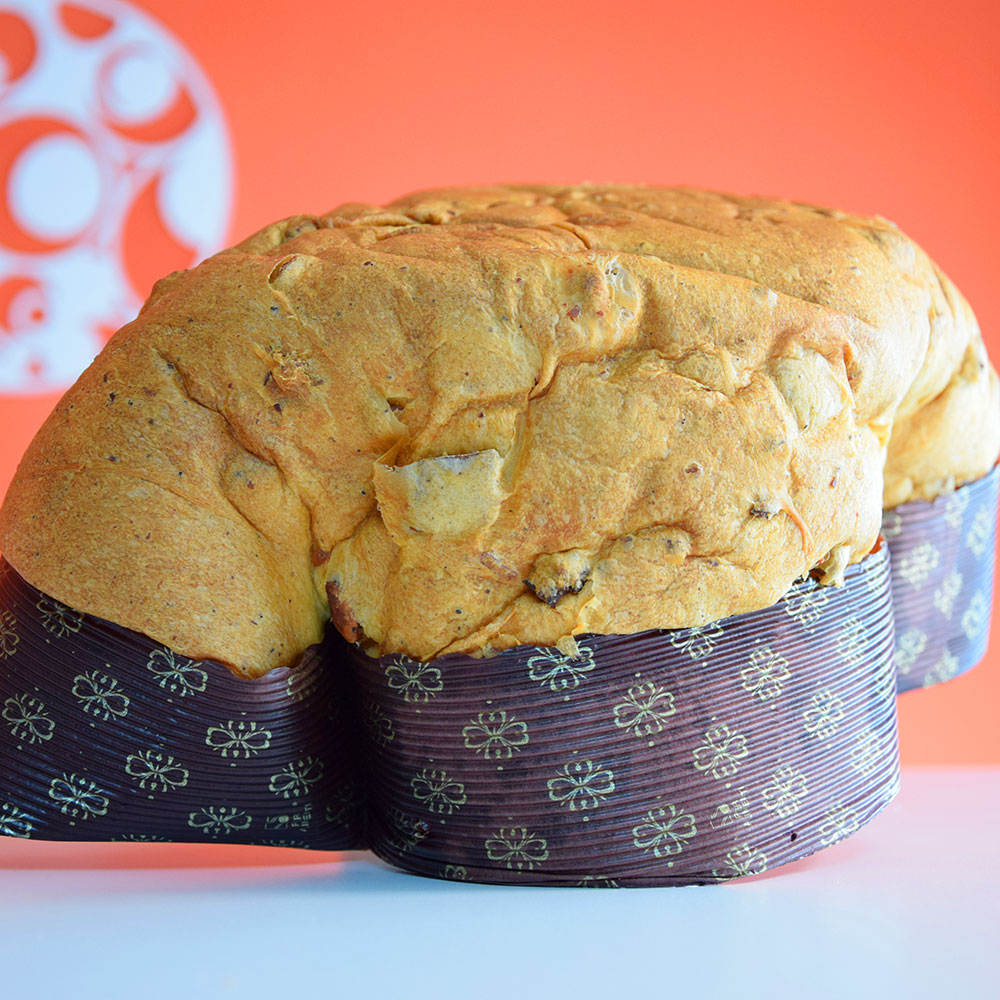 Farina di FRUMENTO tipo “00”, BURRO di Normandia, mortadella, pistacchio intero, TUORLO D’UOVO, acqua, lievito madre, zucchero, maltitolo, destrosio, miele d’acacia, sale, malto d’orzo, pepe.