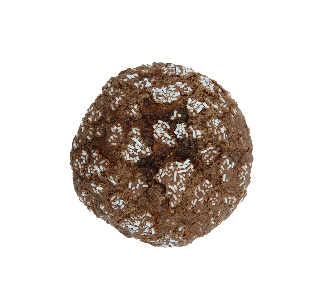 La finitura è un capolavoro di pasticceria: la croccante glassa di mandorle è impreziosita da una spolverata di cacao amaro, che anticipa il profumo esotico del caviale di vaniglia del Madagascar nell’impasto.