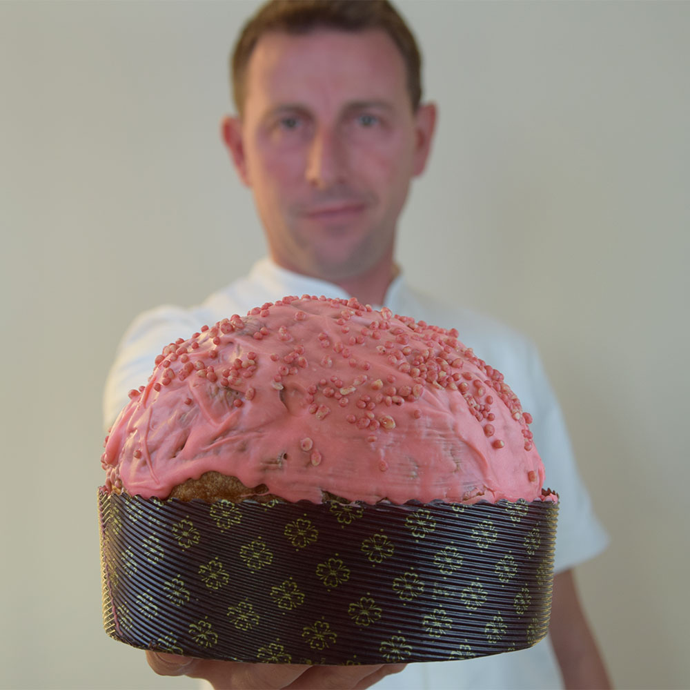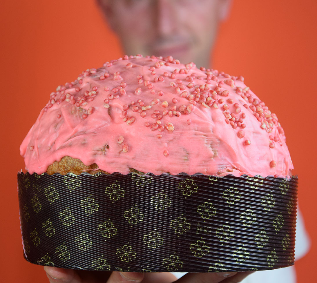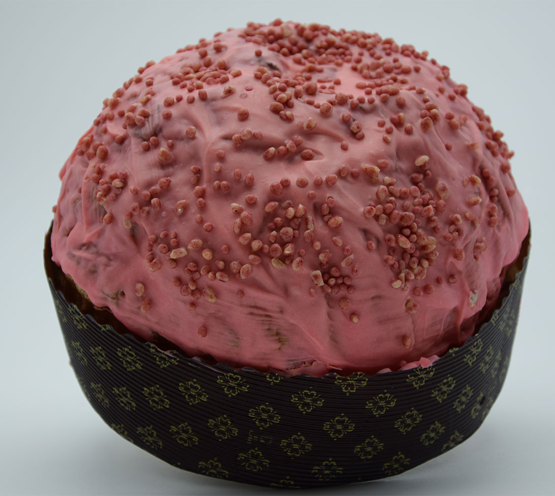 Farina di FRUMENTO tipo”00″, BURRO di Normandia, zucchero, TUORLO D’UOVO, acqua, lievito madre, lampone (sciroppo di glucosio-fruttosio, scorza di arancia, saccarosio), fragole(sciroppo di glucosio zucchero, acqua), cioccolato bianco (burro di cacao, latte in polvere, lecitina di SOIA, aroma vaniglia) miele, massa di cacao, PANNA, cacao amaro, glassa: cioccolato bianco (zucchero, grasso vegetale, SIERO DI LATTE in polvere, LATTOSIO, amido di riso, olii vegetali, aroma) colorante rosso(olii vegetali, E124, aroma vaniglia), pasta d’arancia (glucosio, zucchero, succo di limone, aromi naturali) pasta di limone (glucosio, zucchero, succo di limone, aromi naturali), sale, malto d’orzo, vaniglia del Madagascar.