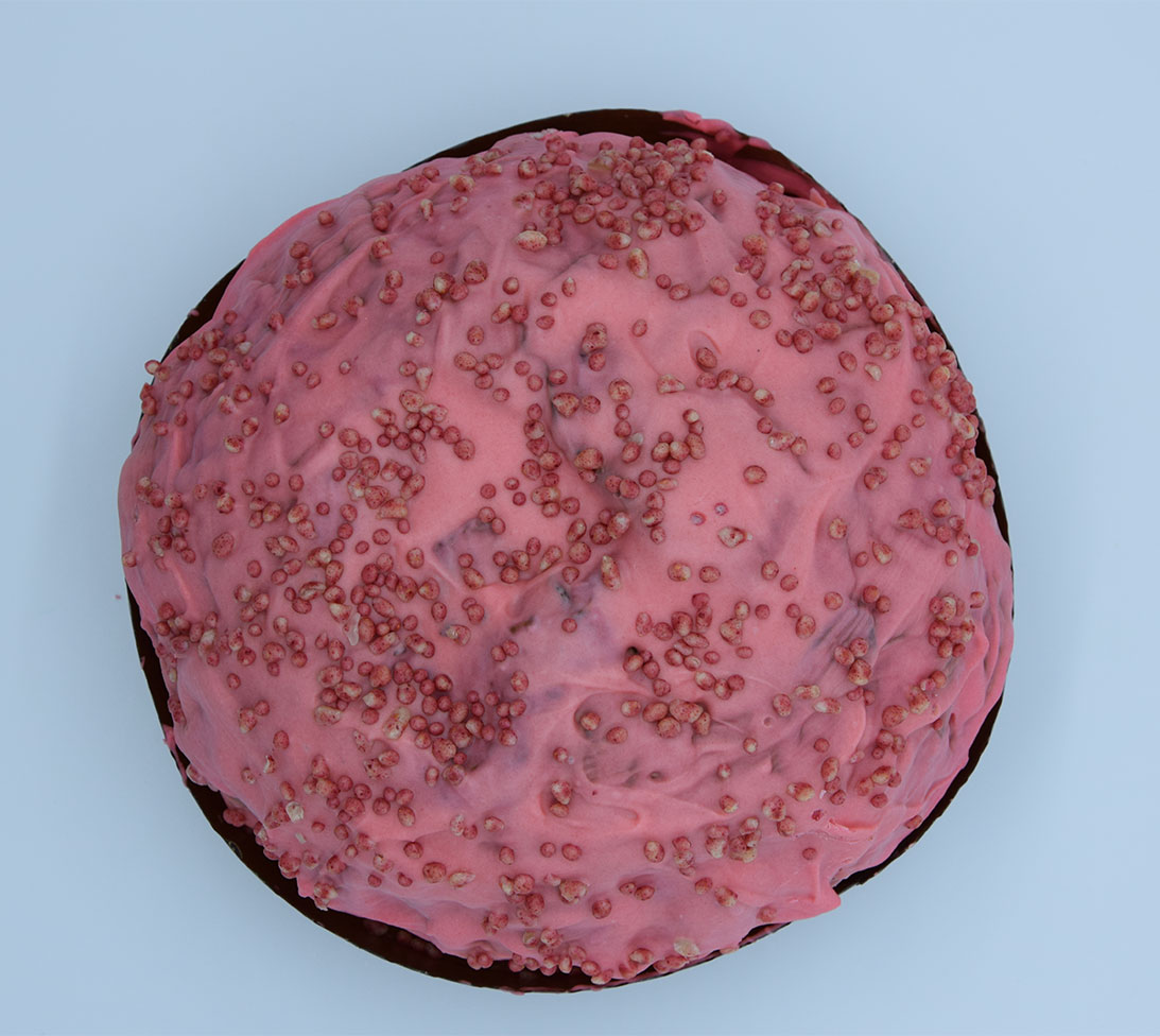 Ogni morso è un viaggio sensoriale: l’impasto, arricchito da pezzetti di lampone e fragola, si sposa magicamente con le note vellutate del cioccolato bianco e l’avvolgente morbidezza della panna. La glassa, di un rosso acceso e invitante, cela un cuore cremoso e aromatico, esaltato dagli estratti di arancia e limone.