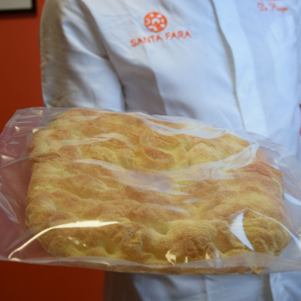 L’impasto viene lavorato con puro Olio d’Oliva e pochissimo lievito, esaltando il sapore rustico della semola e la fragranza del malto. Perfetta per essere farcita a crudo con ingredienti freschi e di alta qualità: dal Prosciutto Crudo e burrata, alle verdure di stagione.